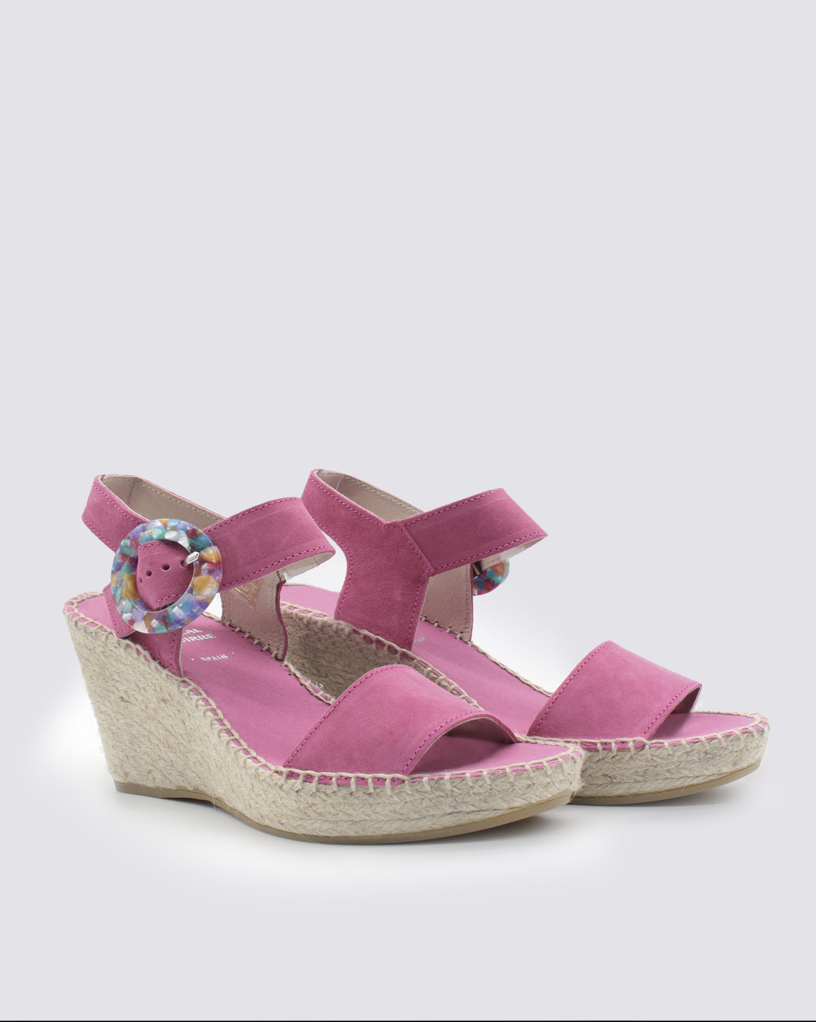Fill your days with color and joy with the ANDESITA FUCHSIA model. This pink sandal is hand-stitched and has a 10 cm natural jute wedge. It is tied to the ankle with a multicolored buckle that gives it an original touch. Thanks to their design, they fit perfectly and you can wear them all day long without your feet getting tired.